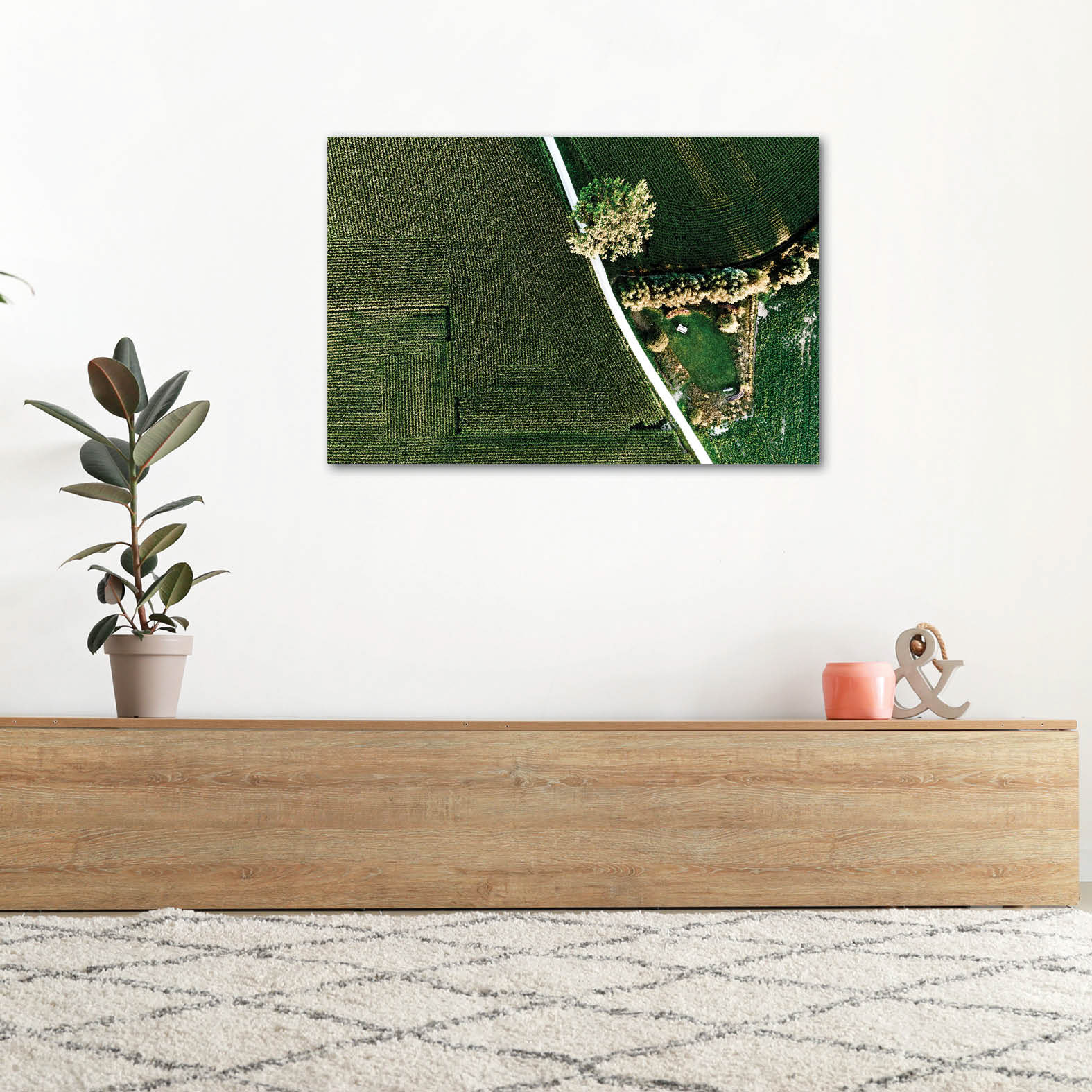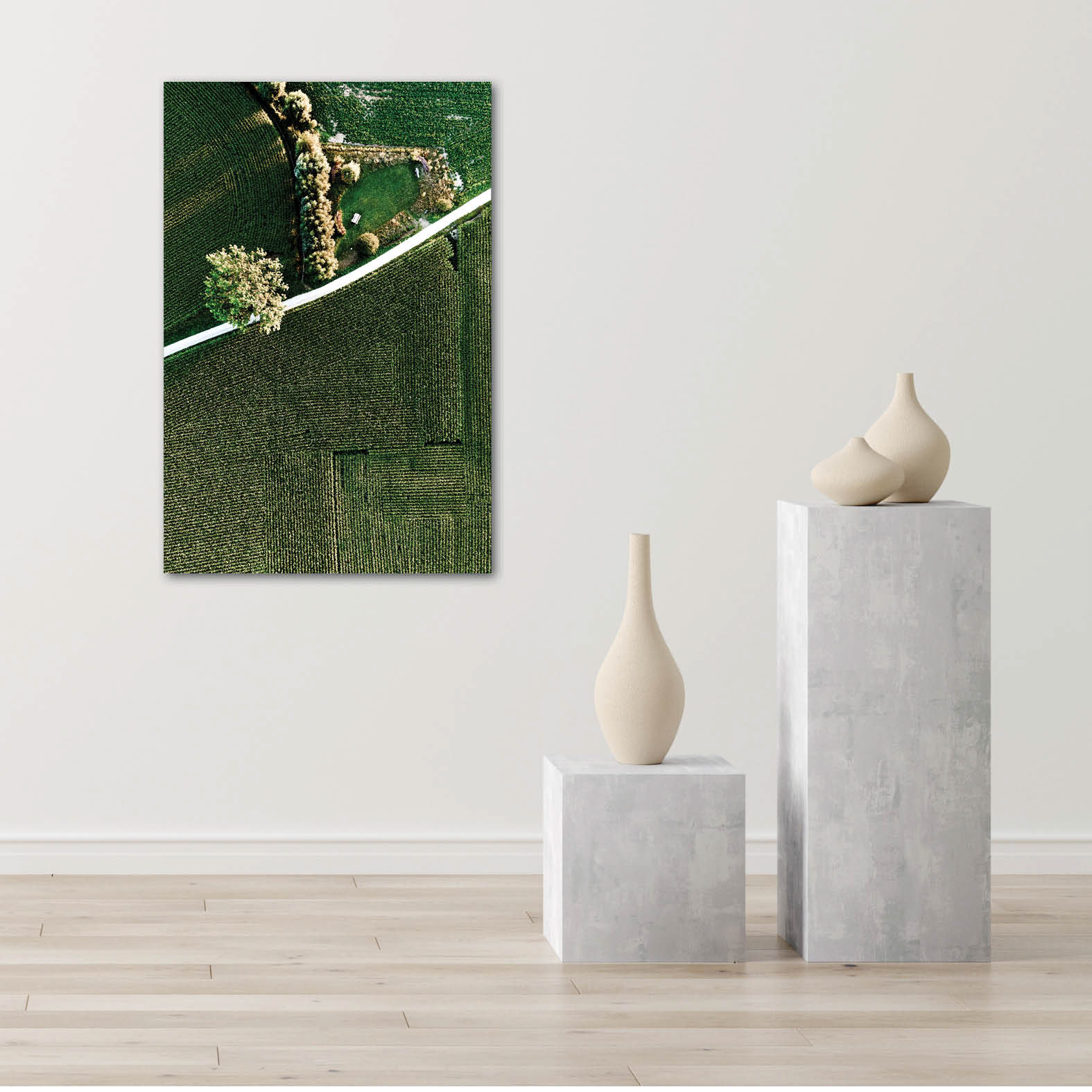 Elke foto in Earth’s Calligraphy is recht van boven genomen. Dit unieke standpunt maakt het mogelijk om de werken verticaal of horizontaal, rechtop of ondersteboven op te hangen — elke oriëntatie biedt een nieuwe indruk en onthult andere patronen in het landschap. Elke rotatie laat je het kunstwerk op een frisse manier ervaren.